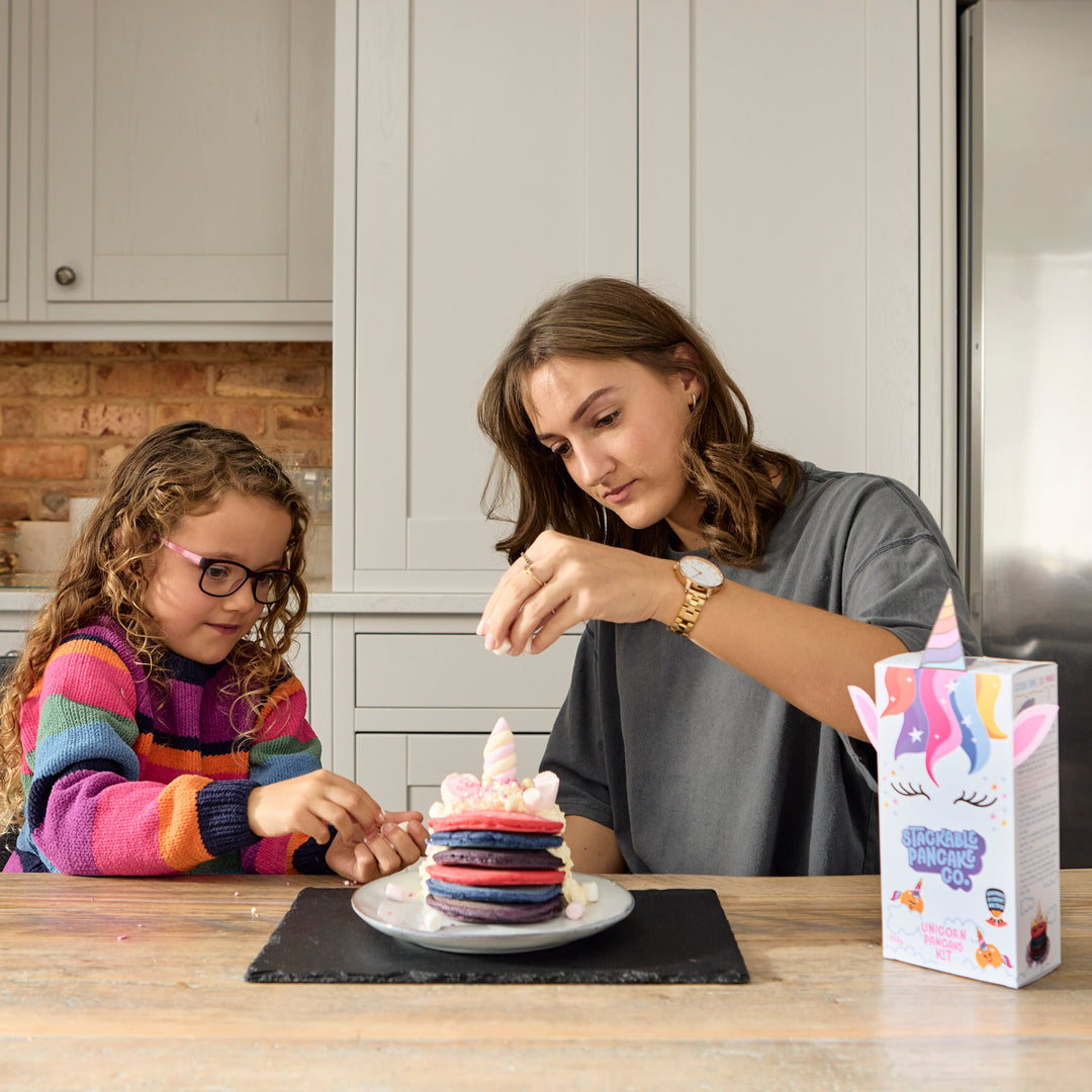 Bring colour and excitement to your day with our delicious Rainbow Pancake Kit.